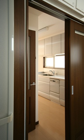 【左】 2階:ユーテイリテイーからキッチンを見る