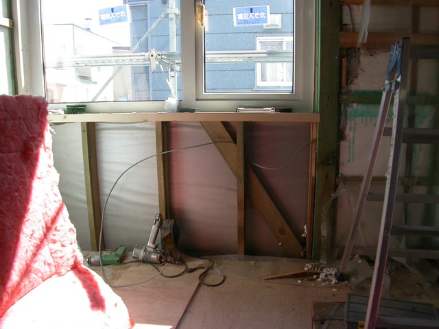 【左】 2010.03.23 構造: 既存の筋かいが窓を設けるため切断することになった。