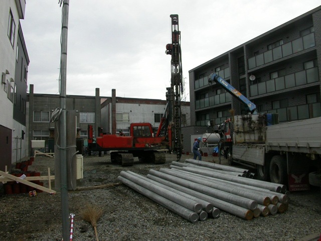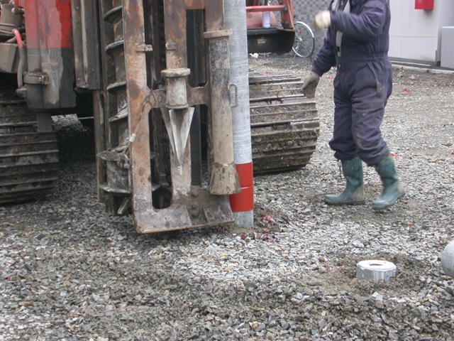 【右】 〃 地盤調査作業状況: 支持地盤までかなり深いって?