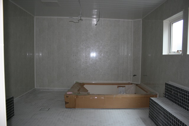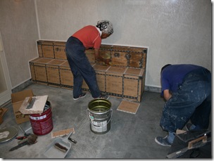 【右】 2010.07.03 浴室: タイル貼りの作業中。