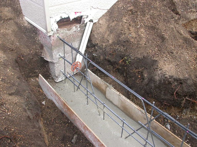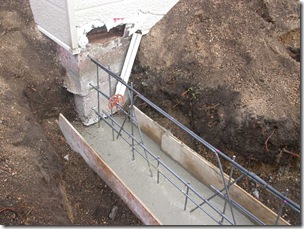 【右】 2008/10/21 既存基礎との取合い部分:アンカーを打ち込みしっかりと接続。換気口部分は補強筋を入れる。