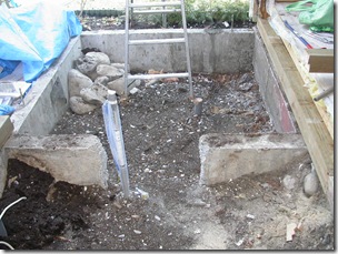 【左】 2008/11/8 居間増築部分:既存の土台は腐食の為撤去。