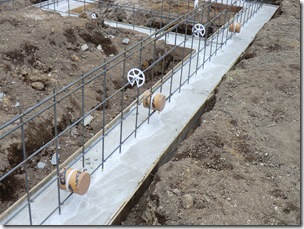 【左】 2013.05.27 鉄筋:ベース・布基礎鉄筋組み全景。