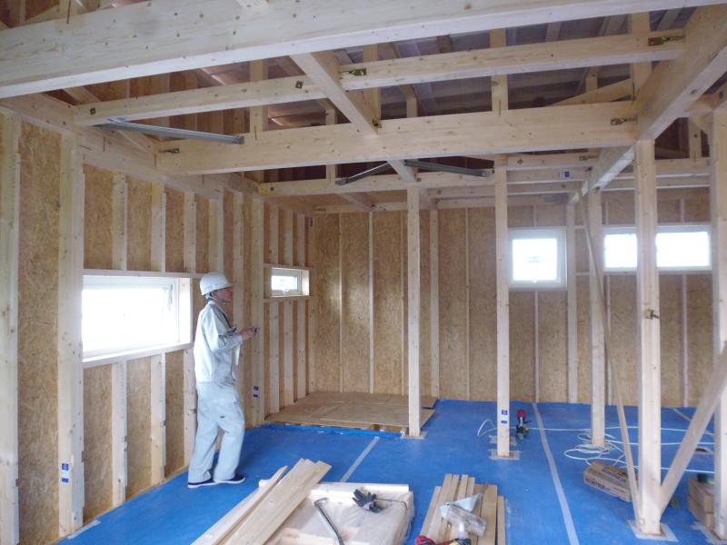 2019.09.26 外部:構造用合板OSB9mm貼り始めました。