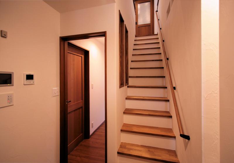 廊下(2階):床、ナラ無垢フローリング・壁天井、塗り壁
