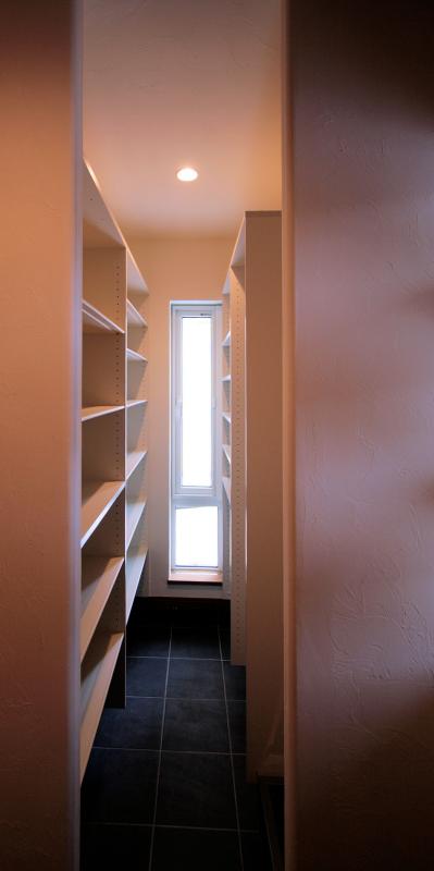 シューズクローク:玄関脇のスペースを利用して両サイドにシューズ棚とハンガー掛け