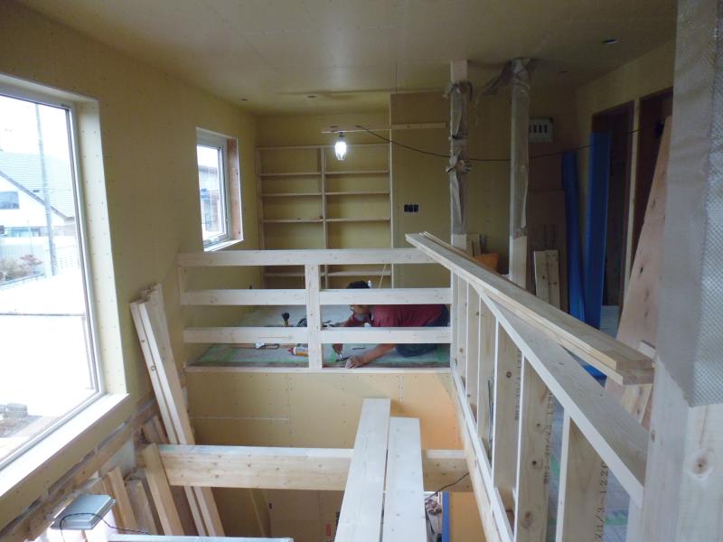 2020.10.24 2階階段ホール:カウンターデスク造作中