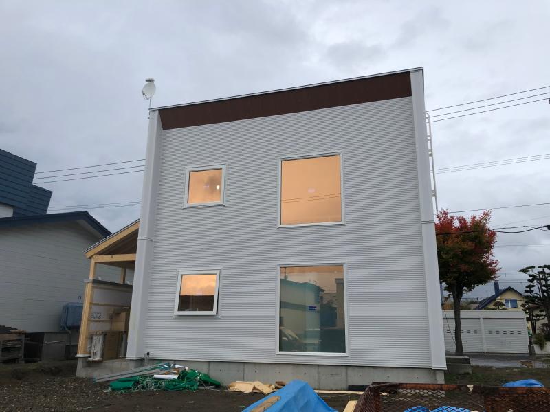 2020.10.24無機質になりがちな外観を玄関ポーチとパラペットがアクセントデザインとなっている。