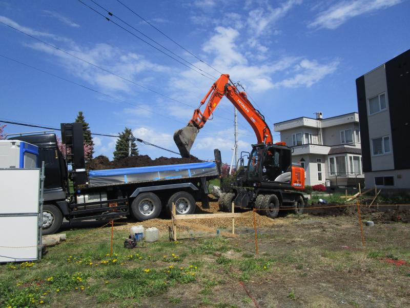 2021.05.14 掘削:地中の支持地盤に当たりそれ以上は貫入しない部分の杭が現れました