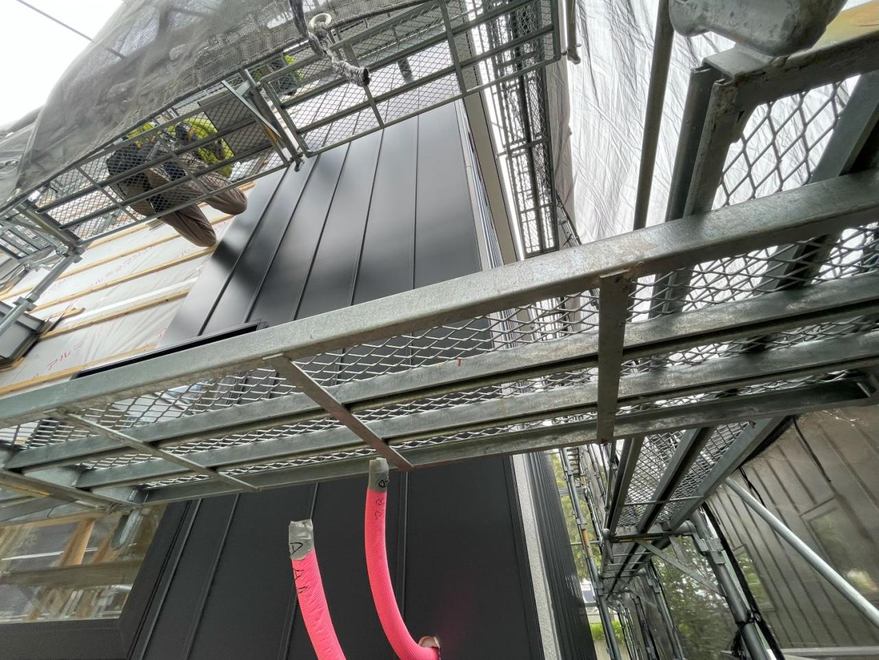 外部:ガルバリウムサイデイング貼りが始まりました。