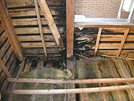 今回は下段の3枚の画像のように、窓サッシ等、開口部からの雨漏りで木材の腐食が著しく、土台の取替え、柱、筋かいの補強など構造改修が必要となります。