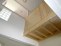 - 同上の通路側から見たところ。壁手すりの裏側は本棚になっています。全て現場でのアドリブです。