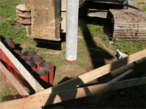 【左】 コンクリート杭が運ばれてきました。(トラック3台分)