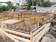家を構成する重要な部分となる基礎工事。鉄筋組から次の作業へ向けての仮設足場の設置までを行いました。