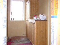 - 【左】システムバス(1.25坪タイプ)の組上り【右】造作部材の修まりを打合せ。(なるほどー)