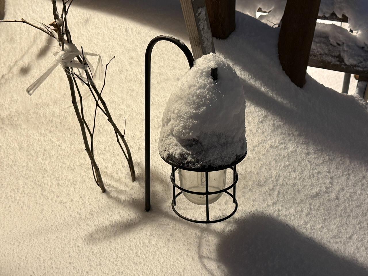 そんな中、昨夜ふと庭に目をやると、片隅に置いているソーラー式のランタン灯が、