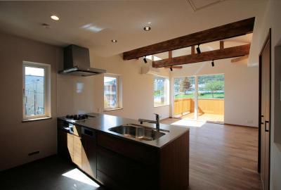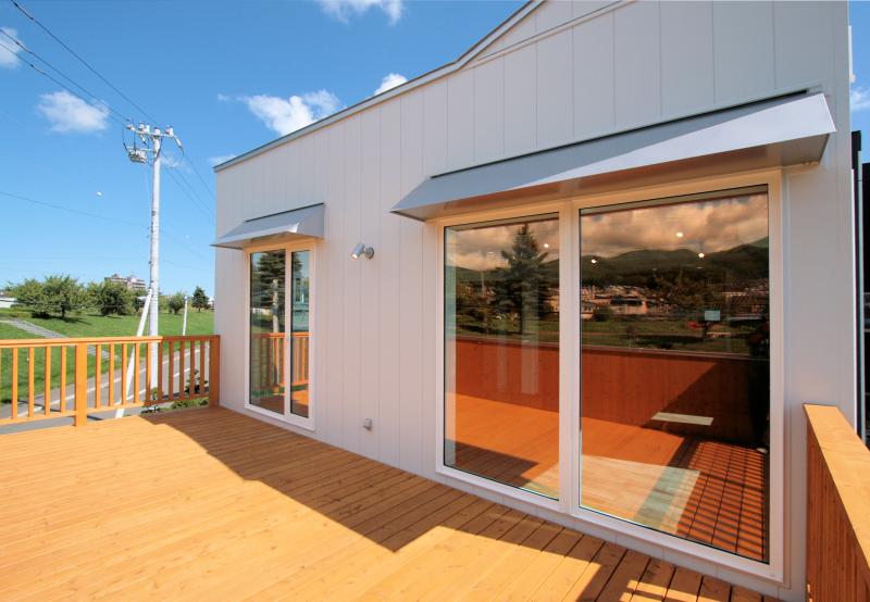 開放感溢れる2階リビングと広々ウッドバルコニー